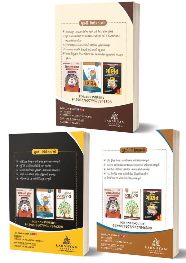 CCE Exam Book Combo CCE ની પરીક્ષા માટે આ બુકનો કોમ્બો બનાવવામાં આવ્યો છે. જેમાં ગણિત, રિઝનિંગ અને ગુજરાતી વ્યાકરણની બુકનો સમાવેશ કરવામાં આવ્યો છે.